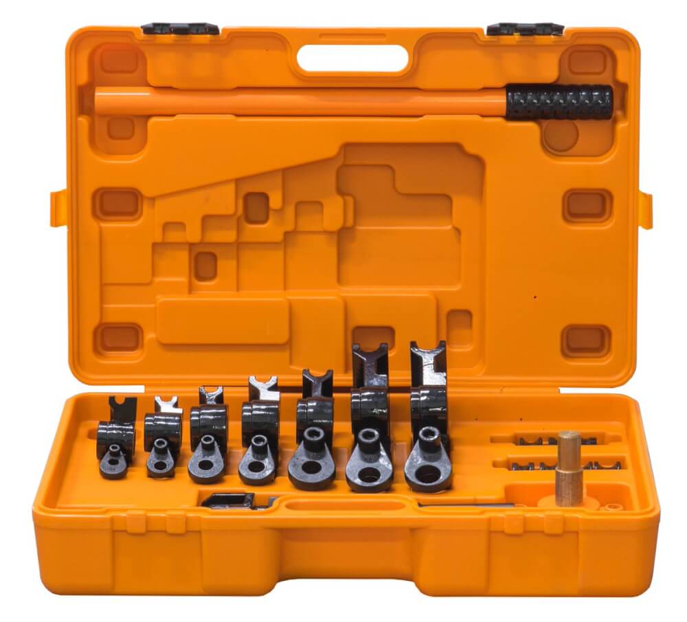 • Подходит для работы с трубами из цветных материалов, стали в том числе и нержавеющей стали (диапазон труб 9,5-25,4мм). Семь наборов роликов.
